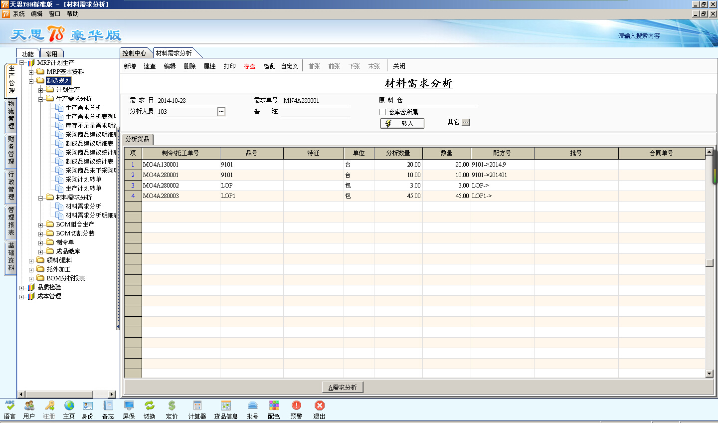 ◆ MRP需求分析功能集成生產(chǎn)參數(shù)信息,按照訂單交期分析出合理的制造數(shù)量、開工時間、原料的采購數(shù)量、采購時間,為采購和生產(chǎn)安排提供決策依據(jù);