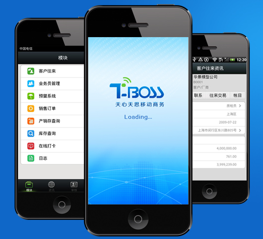 移動商務平臺基于ios、Android平臺的基礎,融合企業(yè)組織行為管理的協(xié)作和運行模式,達到借助一臺移動終端設備讓用戶實現(xiàn)隨時隨地登陸天心天思ERP系列產(chǎn)品,進行資料查詢、業(yè)務跟蹤、帳款查詢、業(yè)務管理、網(wǎng)絡審核、線上打卡,了解重點商機推進狀態(tài),全方位滿足企業(yè)管理層及基層員工隨時隨地通過ERP系統(tǒng)處理業(yè)務的需求,效率得到顯著提高,實現(xiàn)移動辦公的目的。
