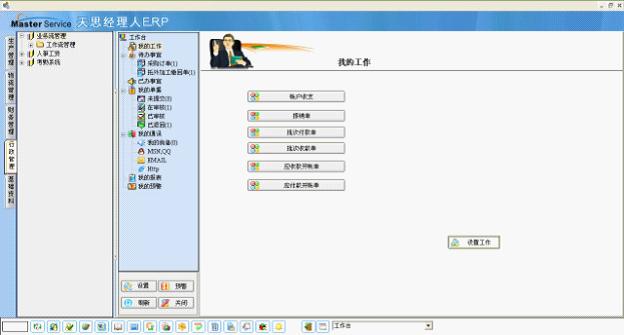 針對(duì)用戶簡(jiǎn)化應(yīng)用需求而精心設(shè)計(jì)的“我的工作臺(tái)”界面,可以集成所有客戶操作應(yīng)用,從ERP業(yè)務(wù)到MS Office、http網(wǎng)頁(yè)瀏覽、e-Mail郵件系統(tǒng)、MSN/QQ等IM即時(shí)通訊等。使用者只要在“我的工作臺(tái)”界面內(nèi)即可完成所有PC操作,簡(jiǎn)化了 多程序界面間來回切換過程。